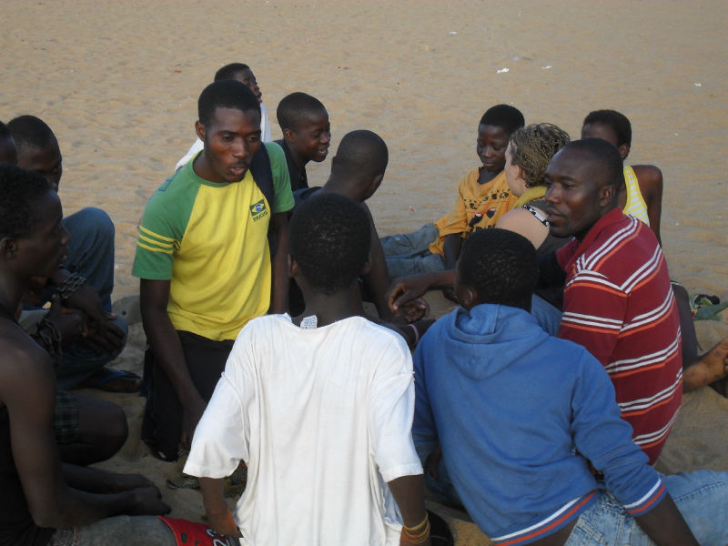 Photo de famille lors de a rencontre avec les enfants de rues (zone la plage)
